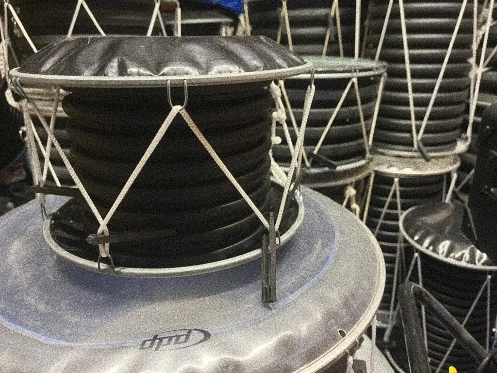 With access to a supply of drainage pipes, donated drumheads from fellow drummers, and rope that was affordable, the first builds began. The early drums followed traditional African rope-tension techniques. But they came with limitations. Each drum required more material than was sustainable: not just two drumheads, but additional rims to create proper tension, either custom-made in metal or salvaged from damaged heads. To scale the project and keep it accessible, a new approach was needed.
